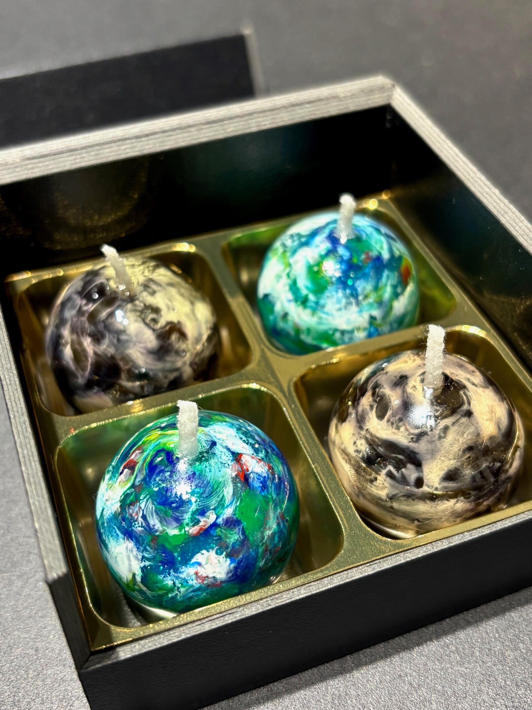 「或る星」は惑星をイメージした小さな柔らかいキャンドルの4個セットです。